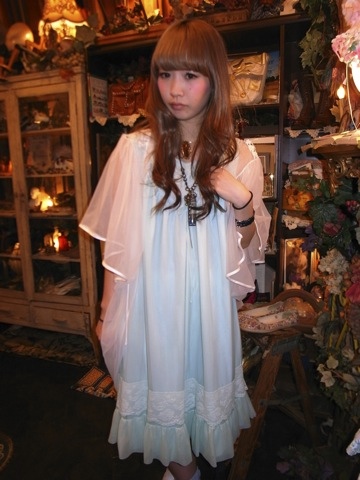 In the last few weeks I've noticed another Cult Party staple showing up in Dolly Kei coords: vintage peignoirs, slips, and other bed or undergarments. These pieces lend an overall "soft" look that Cult Party is known for.